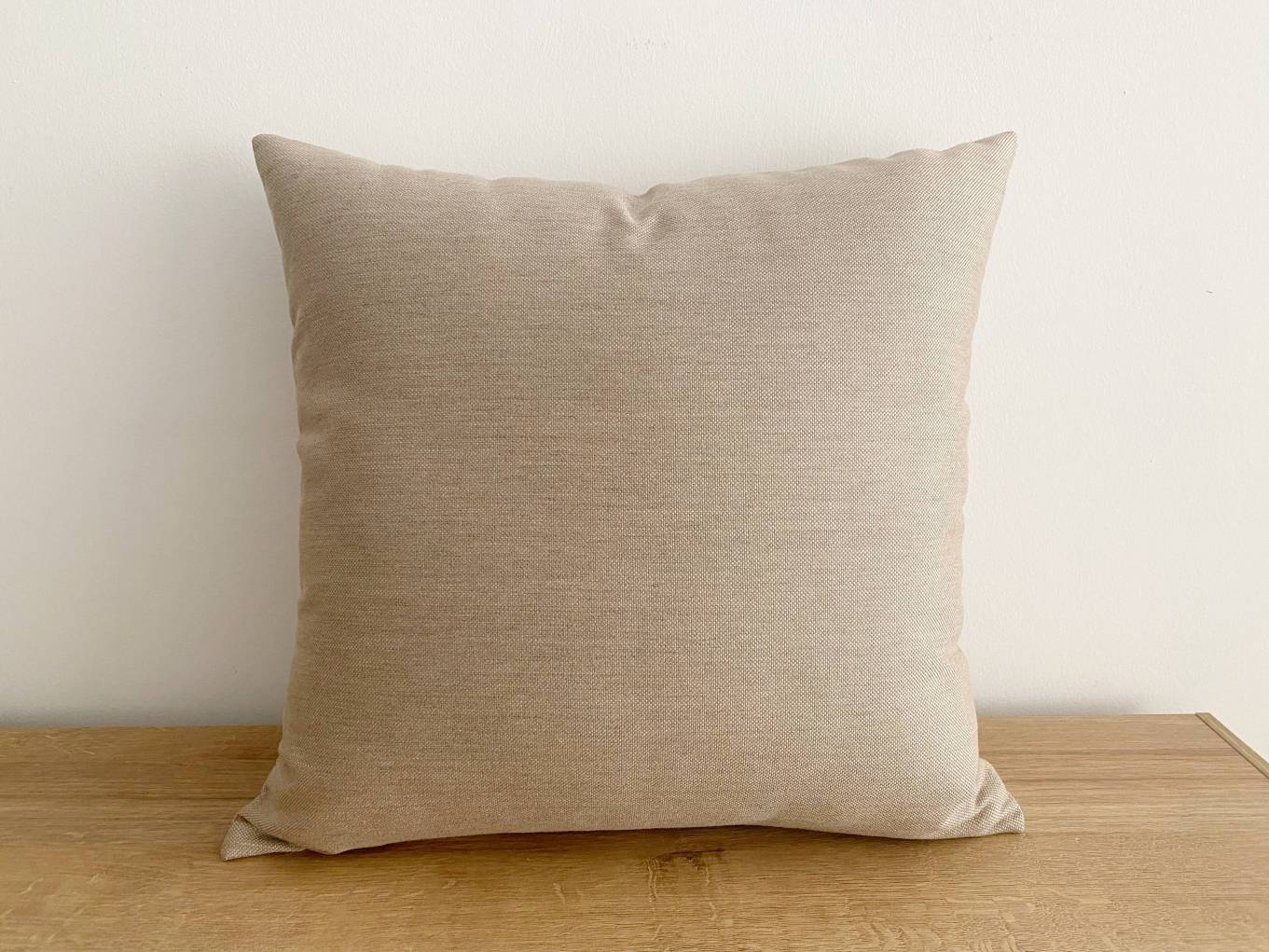 Cojín confeccionado artesanalmente en Barcelona a partir de tejido especial para exterior/terraza. Cierre de cremallera. Incluido relleno.