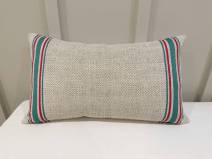 Cojín confeccionado ambas caras con la misma tela. Tejido mezcla de lino, algodón y otras fibras.