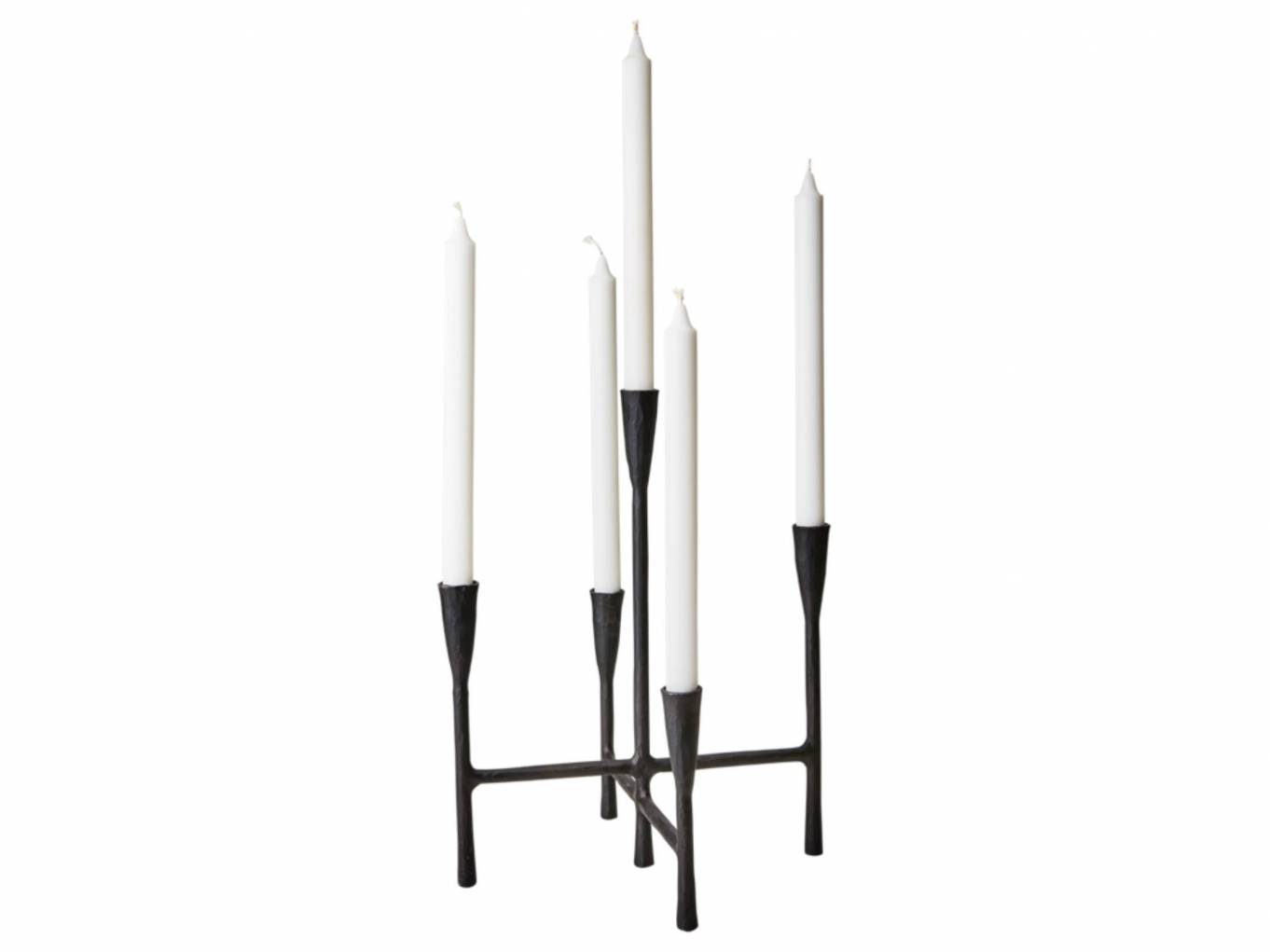Candelabro de hierro negro majestuoso, ideal para decorar los ambientes todos el año.