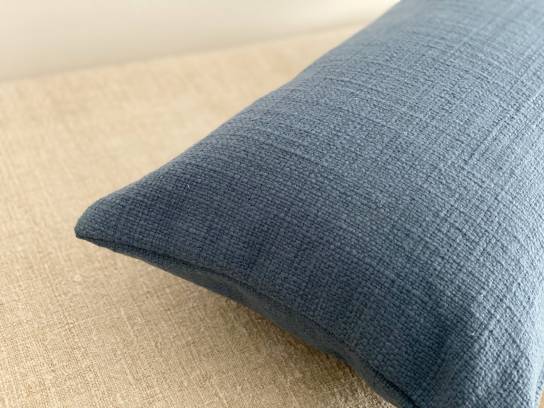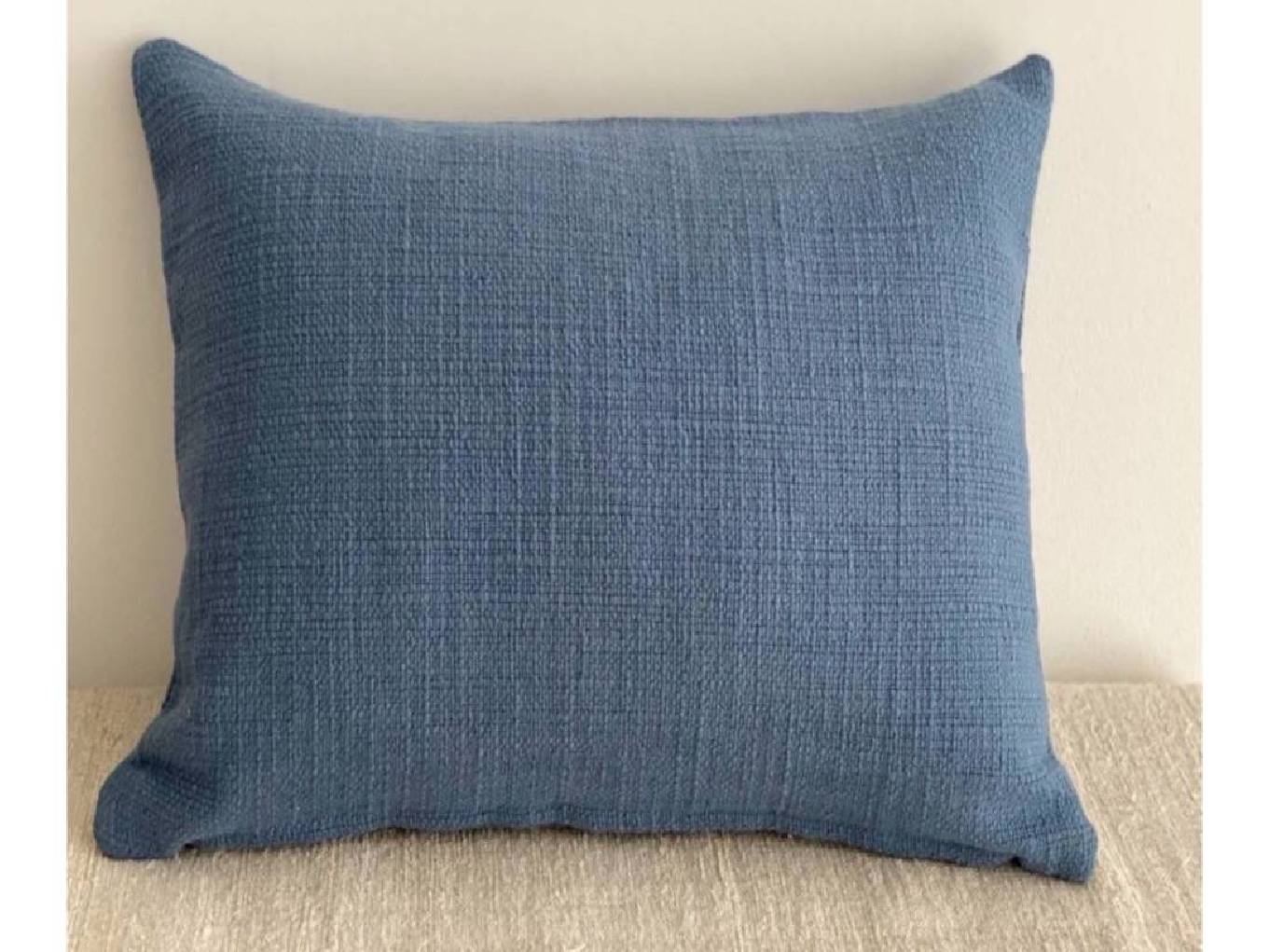 Cojín confeccionado en color azul mar, ideal y atemporal.