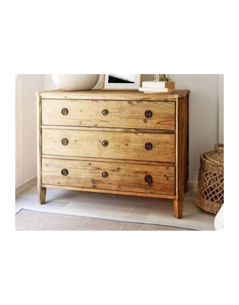 Estructura sólida, la puedes colocar en el recibidor, dormitorio o salón. Encima puedes ponerle un jarrón con flores bonito, junto a un espejo u obra de arte. Es una pieza decorativa que sin duda no pasará desapercibida. La cómoda se compone de 3 cajones con tiradores de latón redondos.