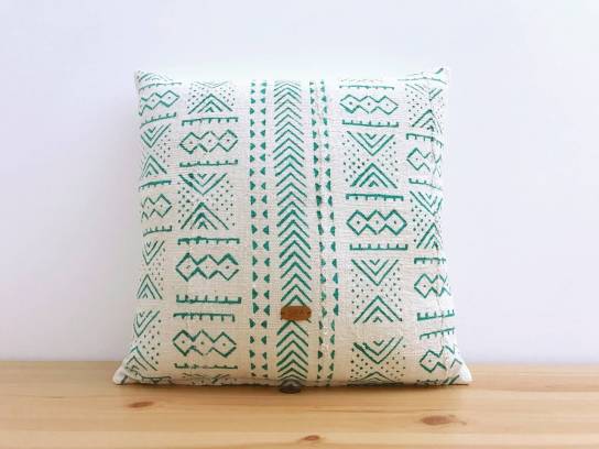 Cada cojín es único, cada dibujo pintado guarda un significado, una simbologia de la vida y cultura de Mali.