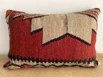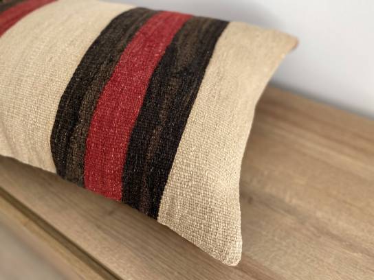 Estos cojines son únicos. Están confeccionados una cara en Kilim de lana rústica y la otra en tela lisa para ofrecer mayor confort al descanso sin renunciar a la estética visual del fantástico tejido.