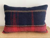 Cojín confeccionado artesanalmente en Turquía a partir de tejido Kilim original y único de lana rústica. Cierre de cremallera. Incluido relleno.