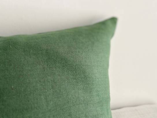 Color verde esmeralda, composición lino 100% lavado a la piedra de 500 gramos, cálido para ofrecer a tu estancia confort y diseño.