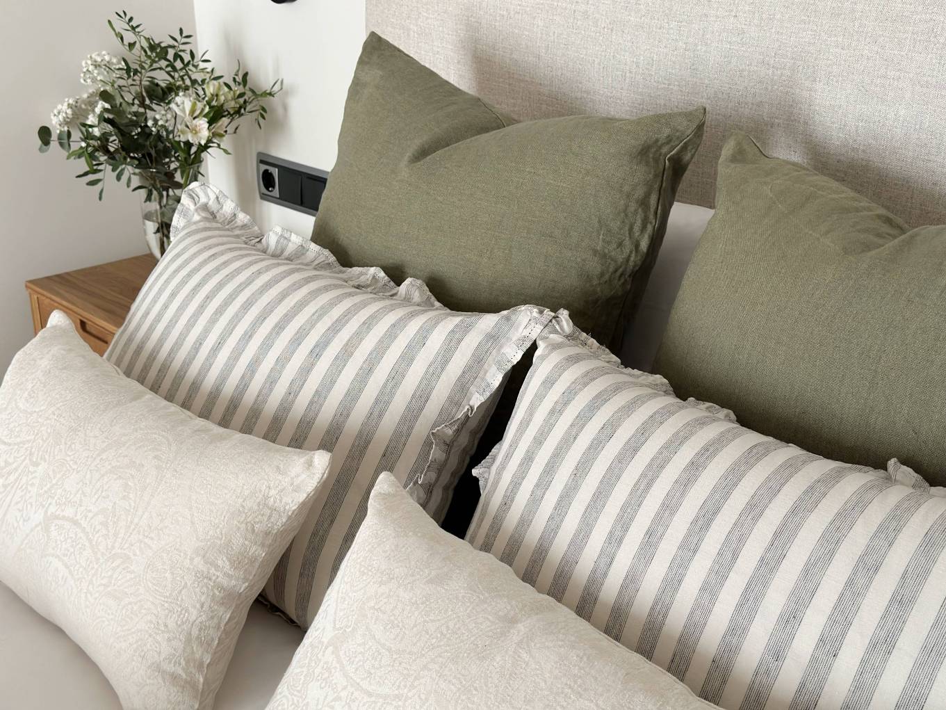 Viste tu habitación con este cojín ideal para colocar en la cama. Quedan perfectes con unos traseros medida 60x60cm y delanteros 30x50cm. Si no sabes como combinarlos escríbenos y te ayudamos.