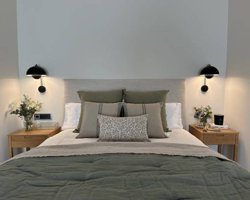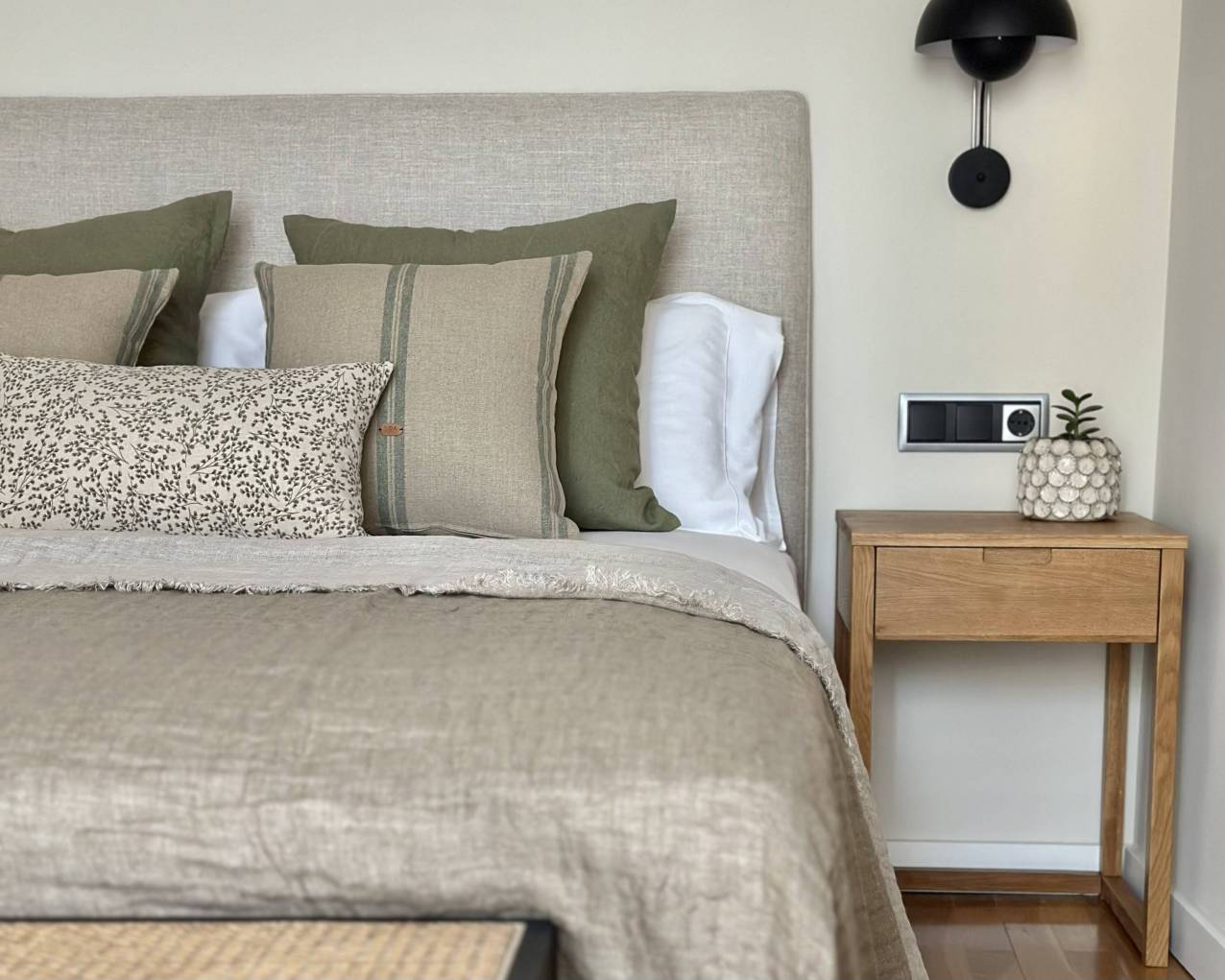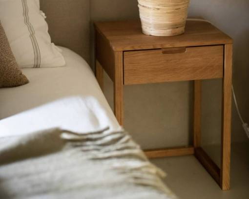Mesita de noche de roble, incorpora cajón con rieles muy práctico.