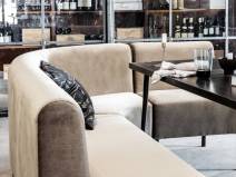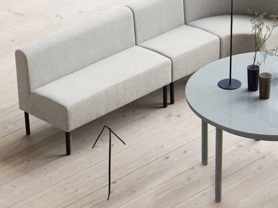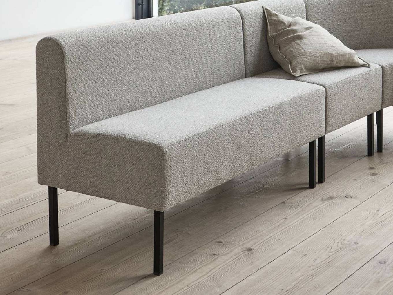 Banco modular ideal para acompañar una mesa rectangular. Queda genial este módulo recto largo junto al curvo y 2 sillas adicionales exentas para cerrar la mesa rectangular.
