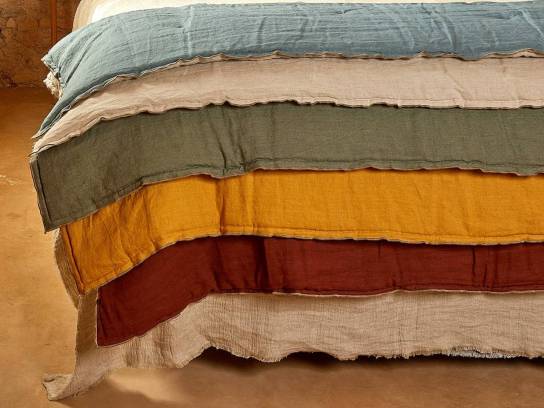 Plaid de puro lino reversible a dos caras y acabado en overlock la costura. Ideal y gustoso para vestir tu pie de cama.