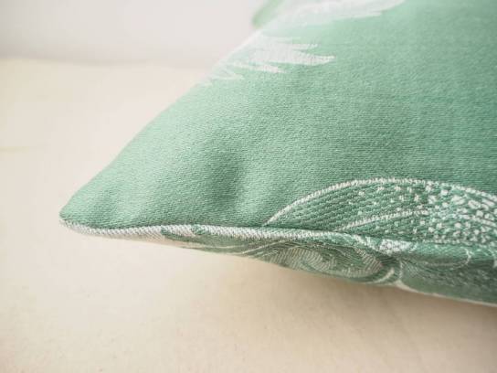 Cojín confeccionado artesanalmente en Barcelona a partir de antigua tela de damasco colchonera vintage. Cierre de cremallera. Incluido relleno.