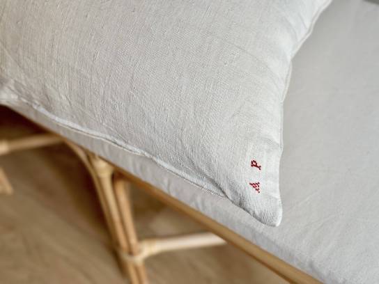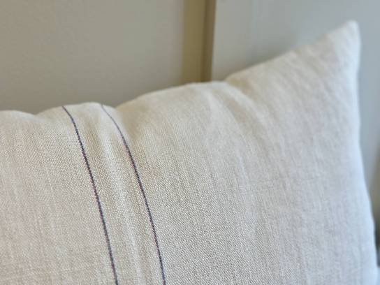 Este modelo viene confeccionado una cara en rayas finas y trasera en puro lino vintage. Sutil y elegante se puede colocar en cualquier ambiente que se quiera conseguir un estilo relajado.