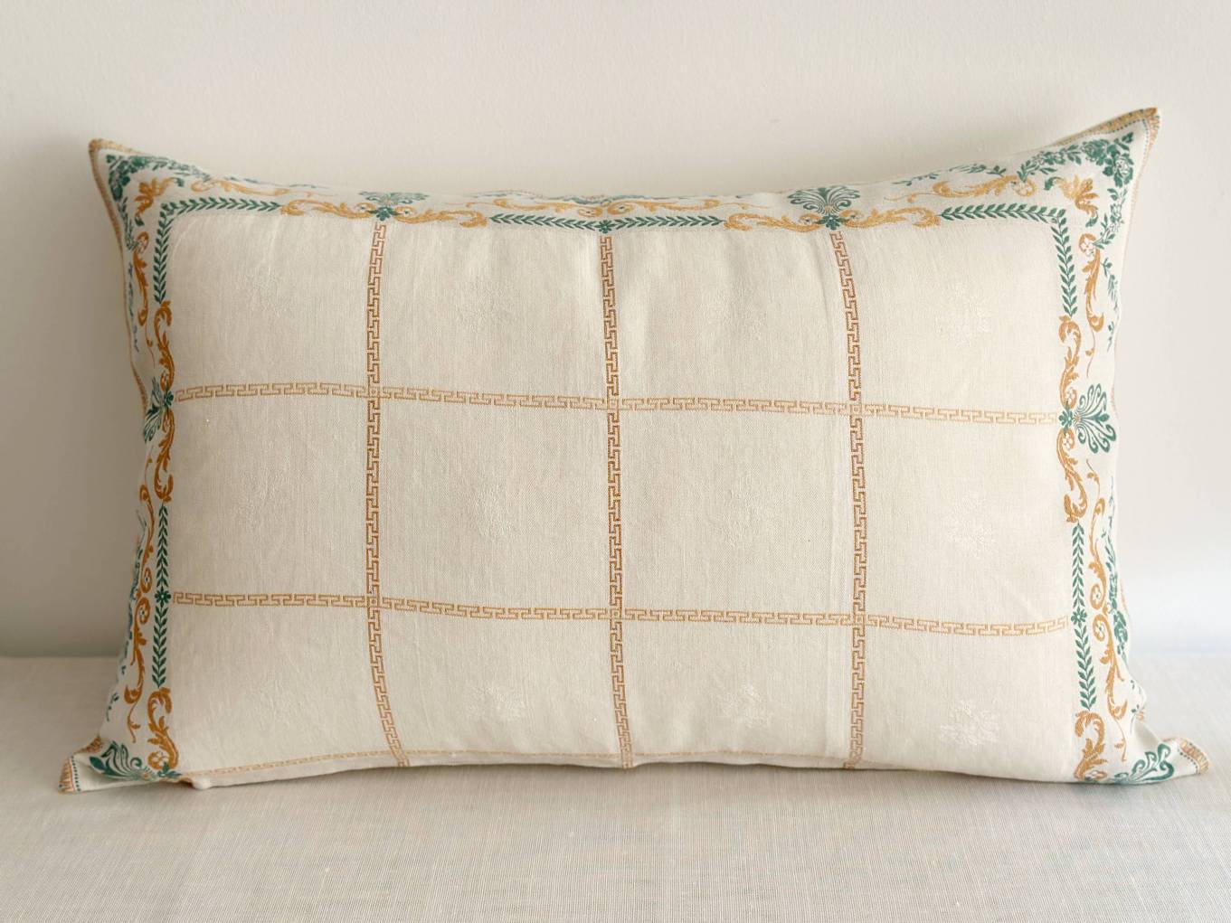 Cojín de tejido lino de principio de siglo exclusivo vintage damasco.