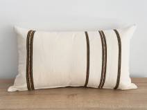 Este modelo viene confeccionado una cara con rayas y la trasera en lino suave color hueso de 350 gramos.